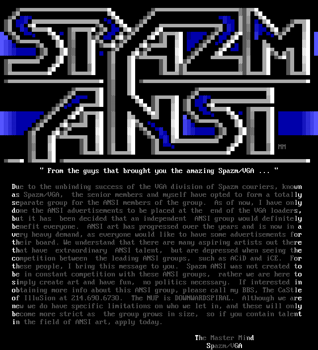 done the ANSI advertisements to be placed at the end of the VGA loaders,