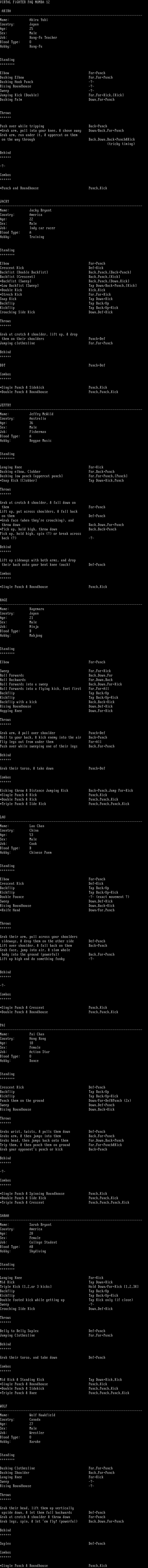 Triple Kick 1,2,or 3 kicks Hold Down/For+Kick 1,2,3X