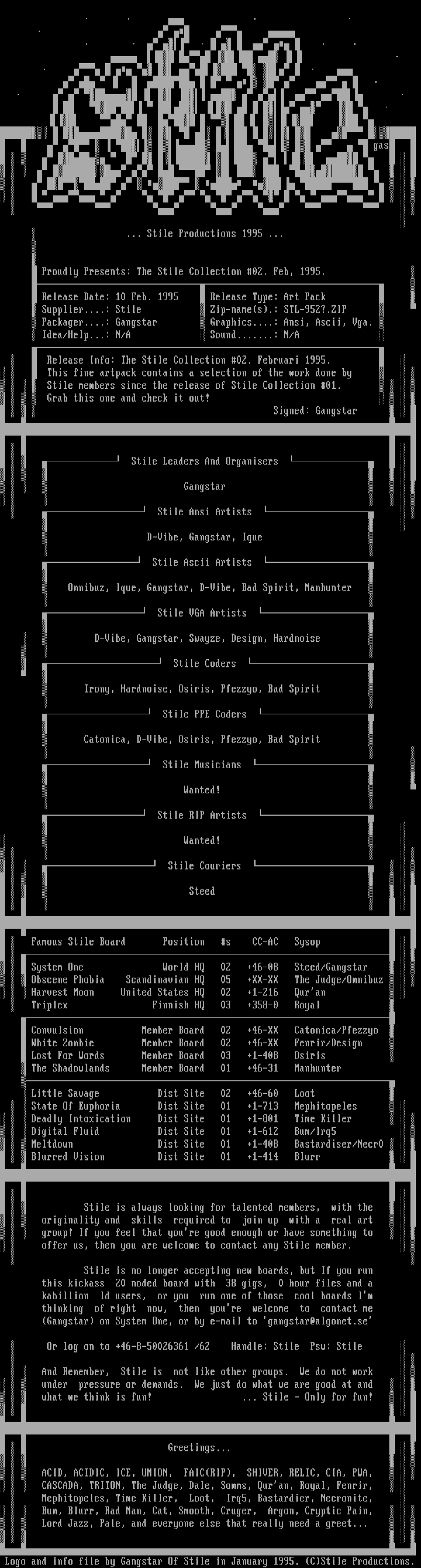 Logo and info file by Gangstar Of Stile in January 1995. CStile Productions.