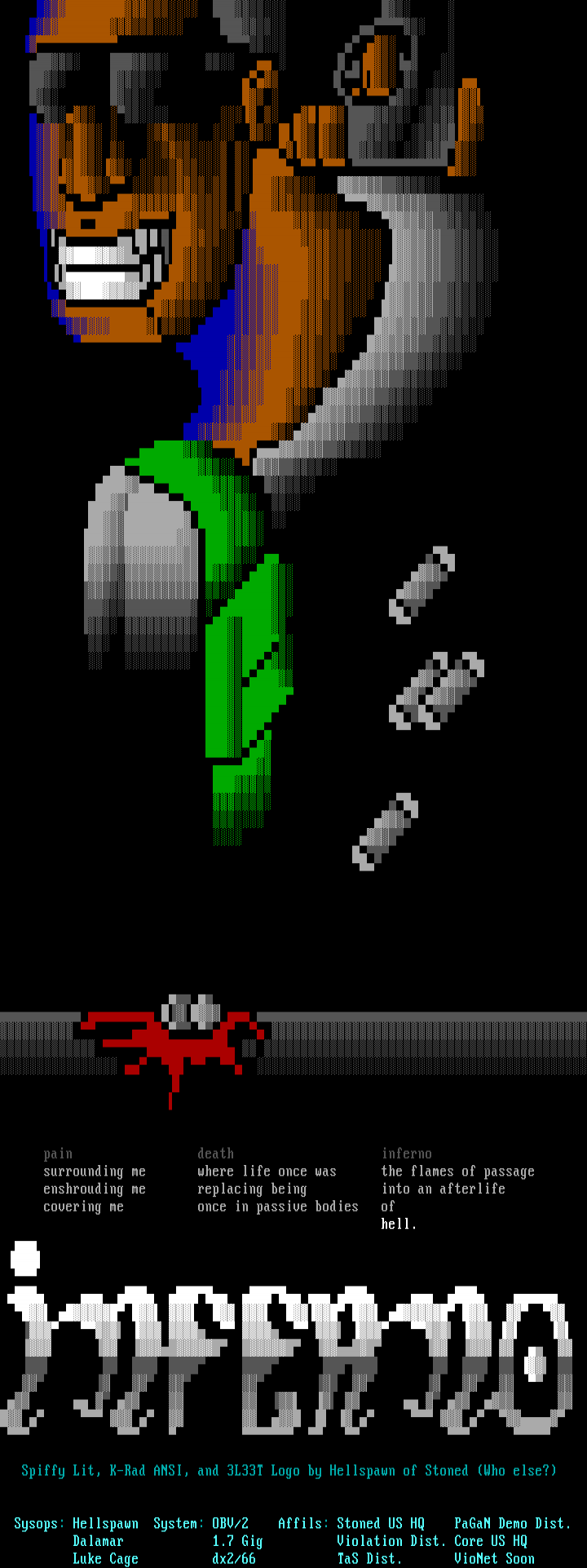 Sysops: Hellspawn System: OBV/2 Affils: Stoned US HQ PaGaN Demo Dist.