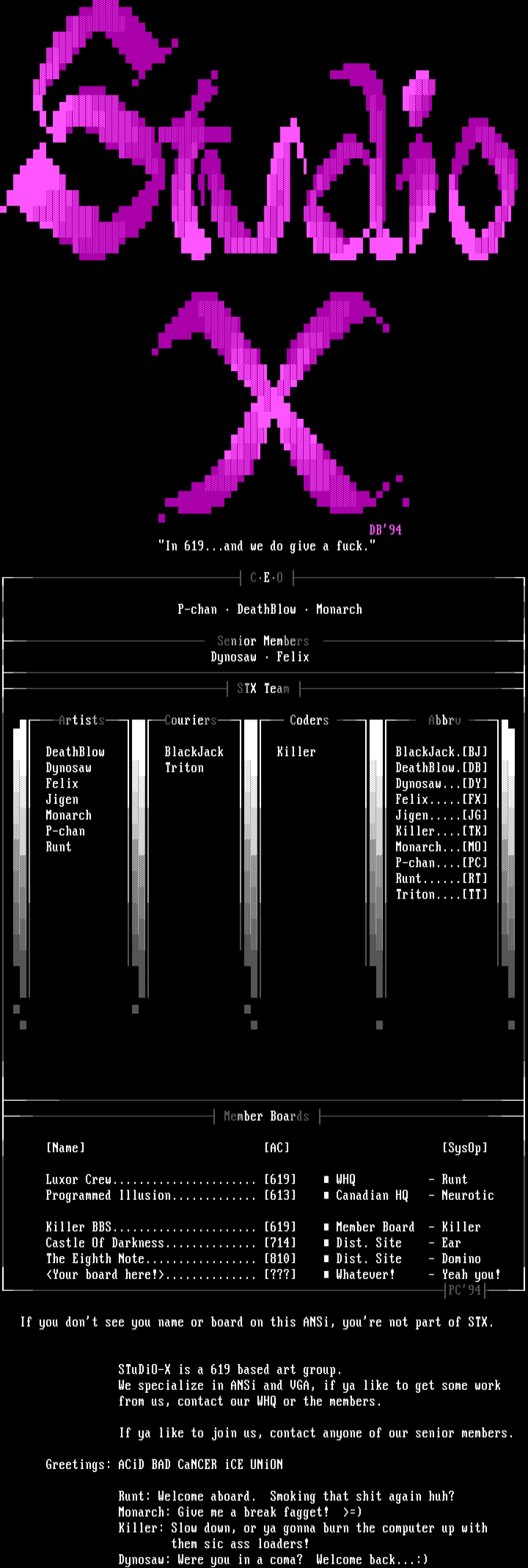 If you dont see you name or board on this ANSi, youre not part of STX.