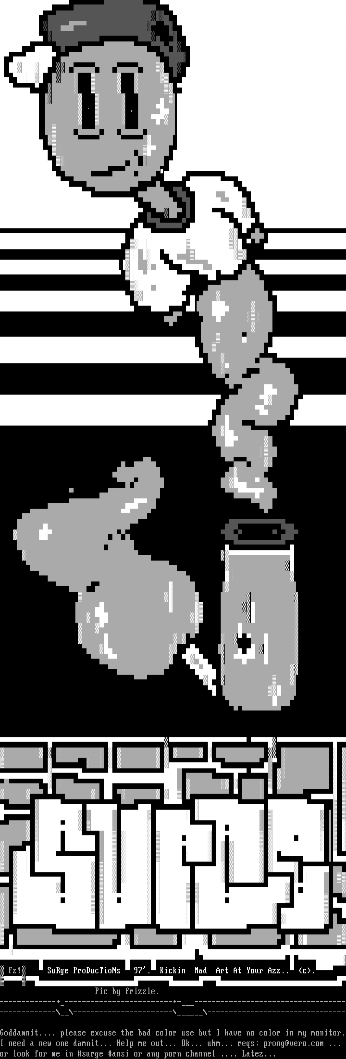 Goddamnit.... please excuse the bad color use but I have no color in my monitor.I need a new one damnit... Help me out... Ok... uhm... reqs: prong@vero.com ...
