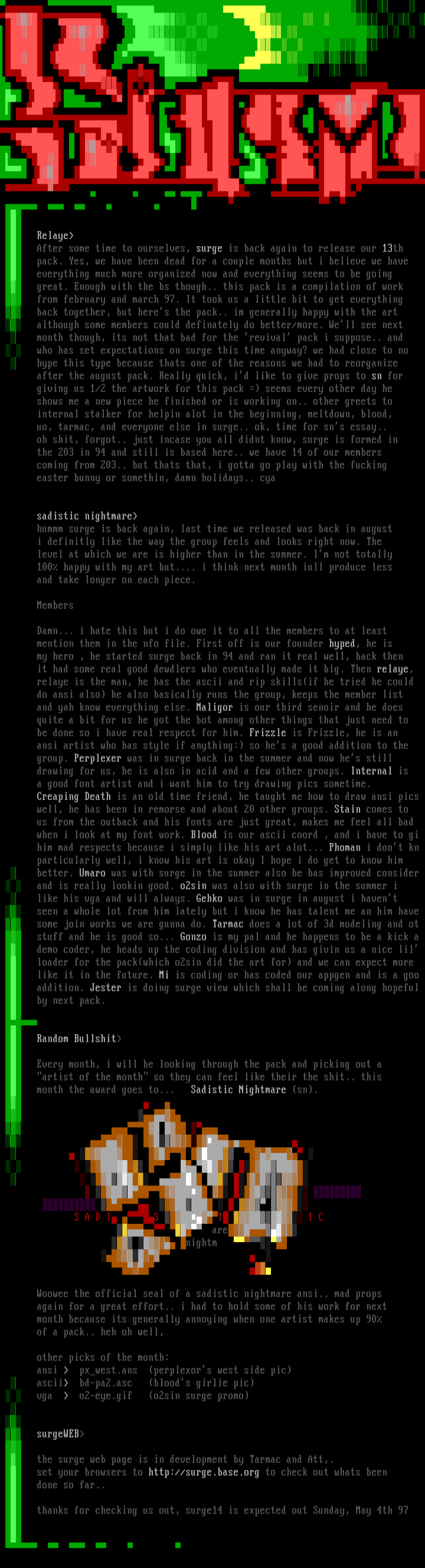 thanks for checking us out, surge14 is expected out Sunday, May 4th 97
