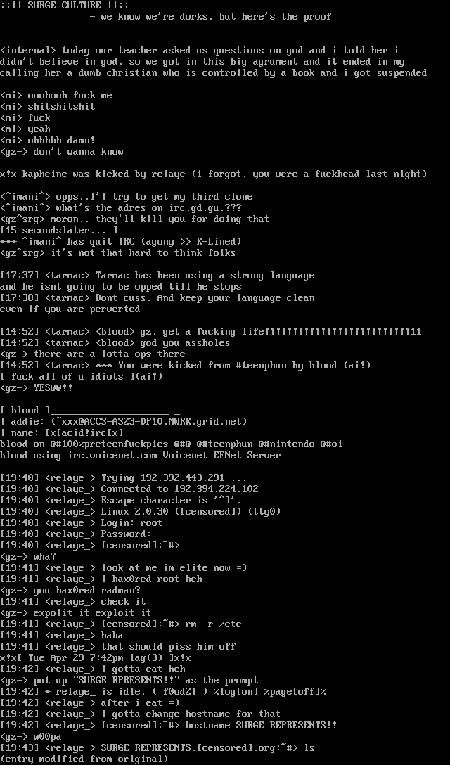 19:42 relaye censored: hostname SURGE REPRESENTS!!