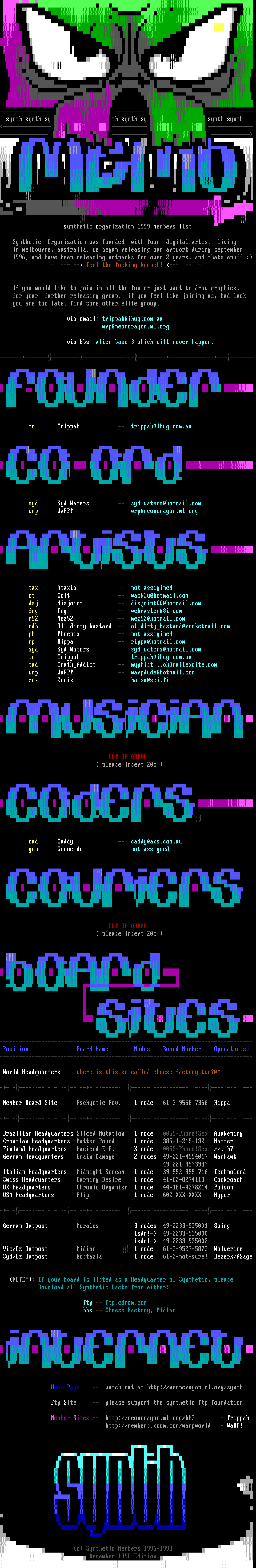 1996, and have been releasing artpacks for over 2 years. and thats enuff :