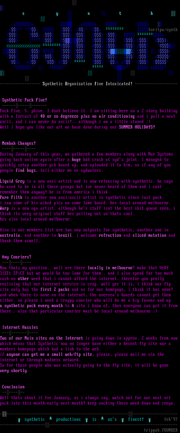 Pure Filth is another new ansi/ascii artist in synthetic since last pack.