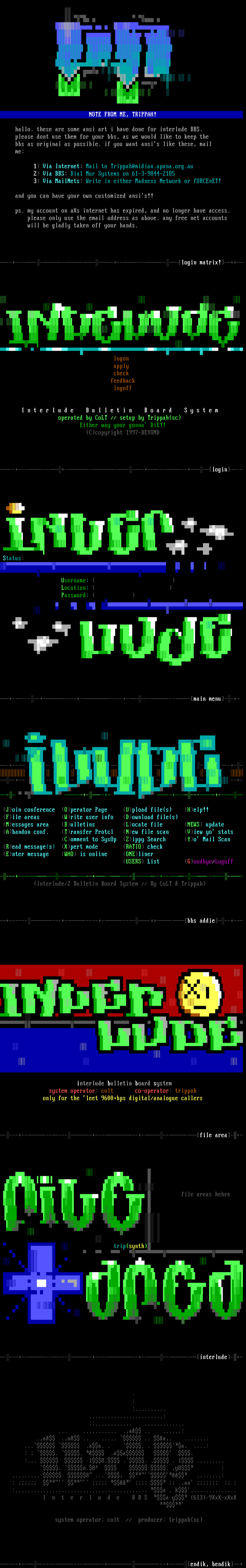 hallo. these are some ansi art i have done for interlude BBS.