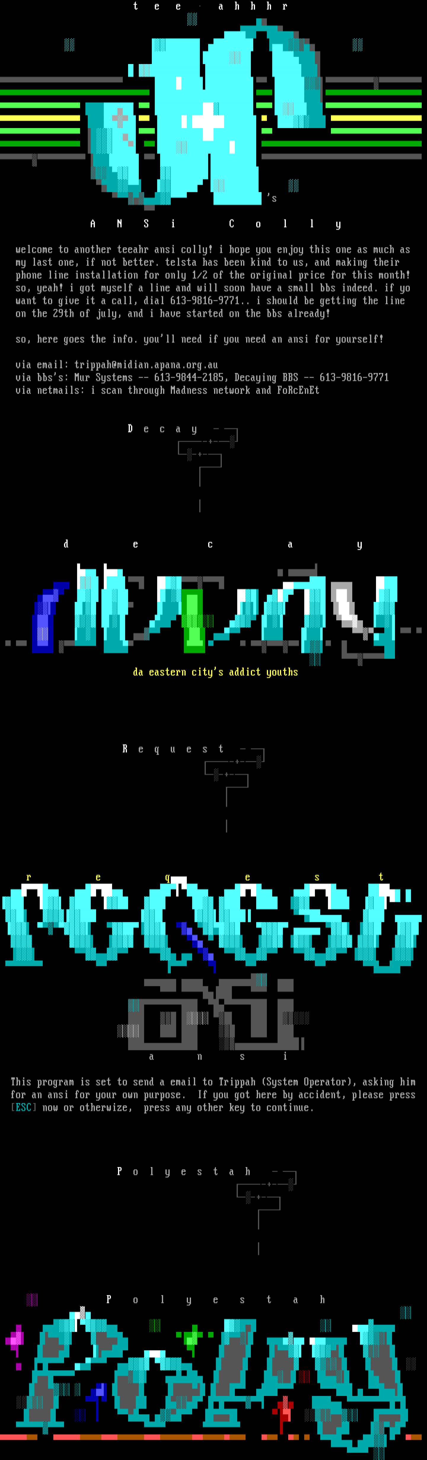 via bbss: Mur Systems -- 613-9844-2185, Decaying BBS -- 613-9816-9771