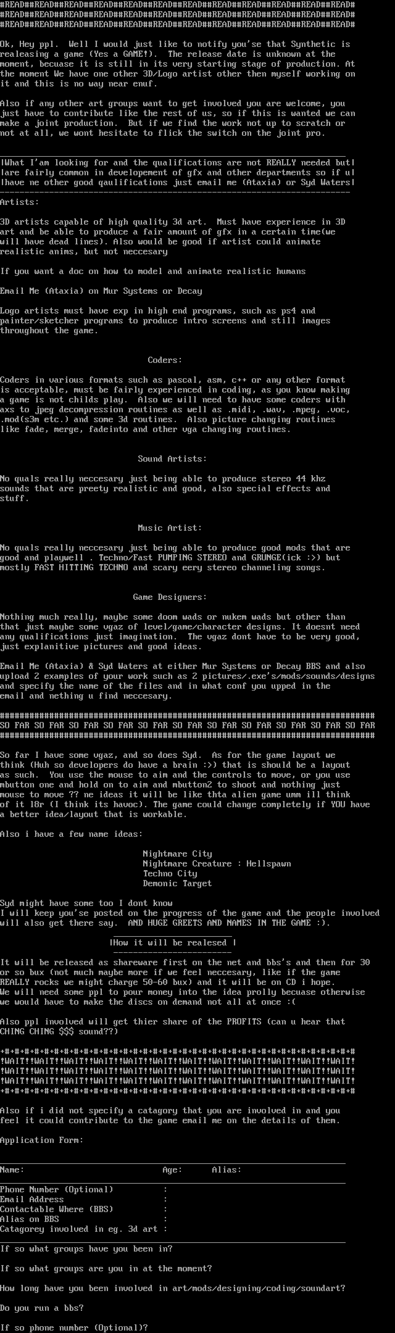 Email Me Ataxia Syd Waters at either Mur Systems or Decay BBS and also