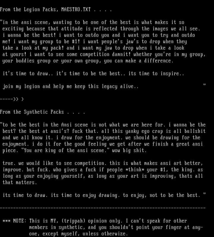 to be the best in the Ansi scene is not what we are here for. i wanna be the