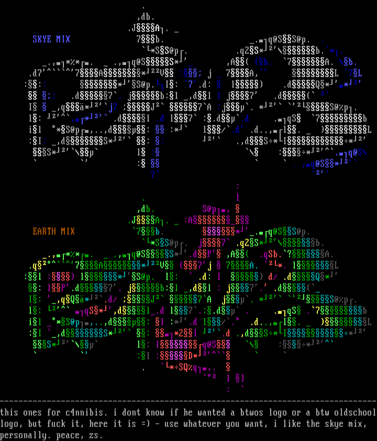 --------------------------------------------------------------------------------this ones for c4nnibis. i dont know if he wanted a btwos logo or a btw oldschoollogo, but fuck it, here it is - use whatever you want, i like the skye mix,