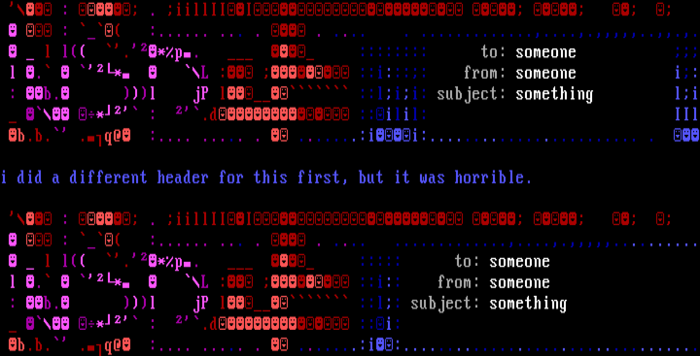 : :...... ... . . .... . .............,....,.,,,,,..,,.,. l l .*p. :::::::: to: someone l . * L : ::i:::: from: someone i: : b. l jP l ::lii: subject: something li * : .d ::ilil: IIl b.b. .q@ :.... ..... . .......:ii:........................ .