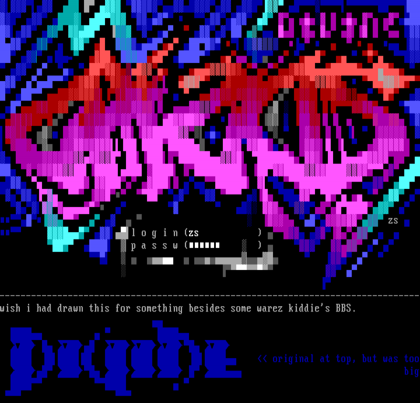 --------------------------------------------------------------------------------wish i had drawn this for something besides some warez kiddies BBS.
