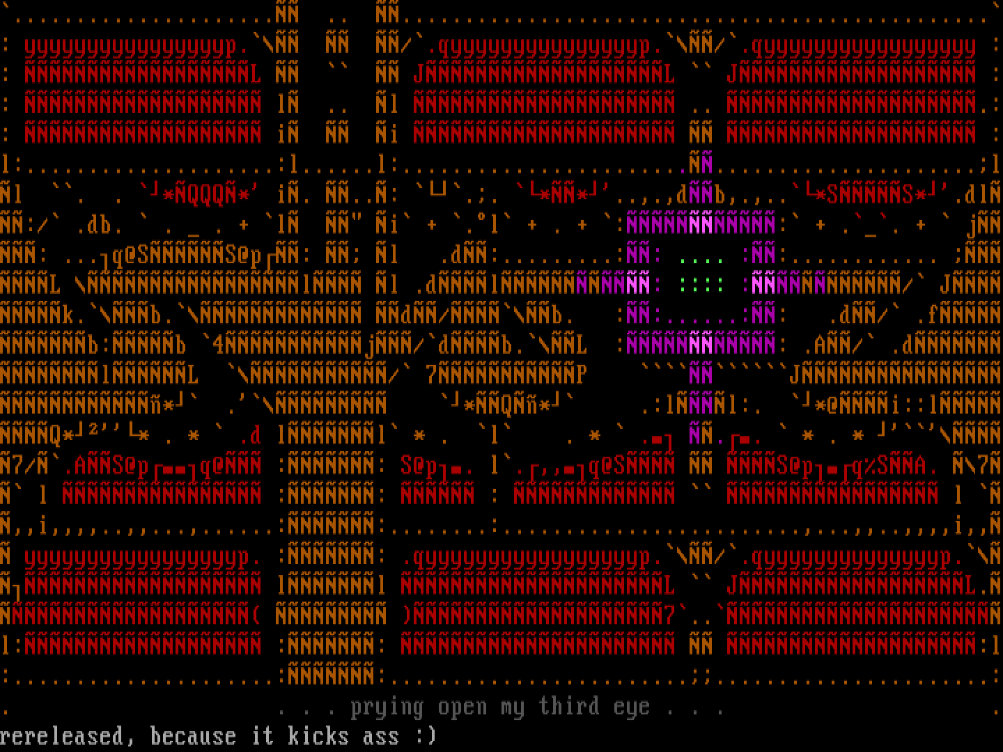 ..................... .. ...............................................: yyyyyyyyyyyyyyyyp. /.qyyyyyyyyyyyyyyyp./.qyyyyyyyyyyyyyyyyy :: L JL J :: l .. l .. .:: i i :l:....................:l......l:............................................ll . . *QQQ* i. ..: .. **..,.,db,.,..*SS*.dl:/ .db. . . + l i + .l + . + :: + .. + j: ...q@SS@p: l .d:.........:: .... ::............ L l l .dl: :::: :/ Jk.b. d/b. ::......:: .d/ .fb:b 4j/db.L :: .A/ .dlL / 7P J* . *Q* .:ll:. *@i::lQ** . * .d ll * . l . * . .. * . * 7/.AS@pq@ :: S@p. l.,,q@S S@pqSA. 7 l :: : l ,,i,,,,..,,...,......::........:........................,...,,..,,,,i,, yyyyyyyyyyyyyyyyyp. :: .qyyyyyyyyyyyyyyyyyp./.qyyyyyyyyyyyyyyp. ll L JL. 7..l: :: :l:.....................::..............................................:. . . . prying open my third eye . . . .rereleased, because it kicks ass :