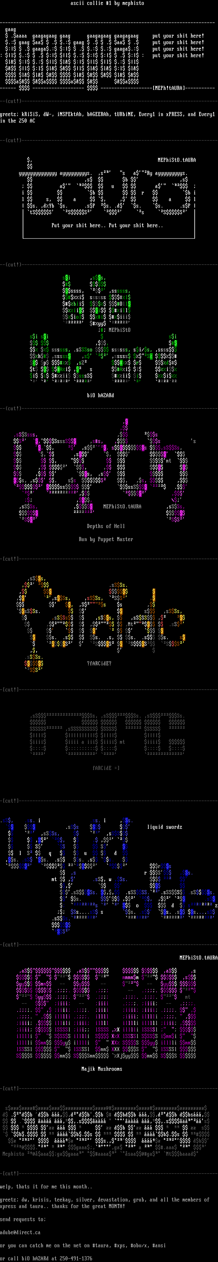 or you can catch me on the net on taura, xps, obv/x, ansi