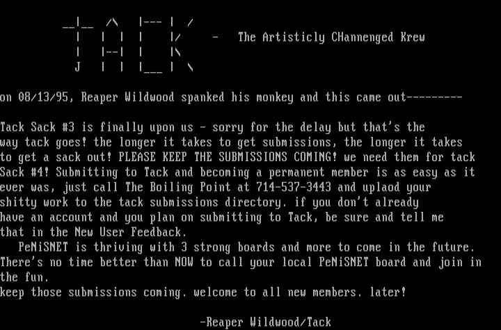 on 08/13/95, Reaper Wildwood spanked his monkey and this came out---------