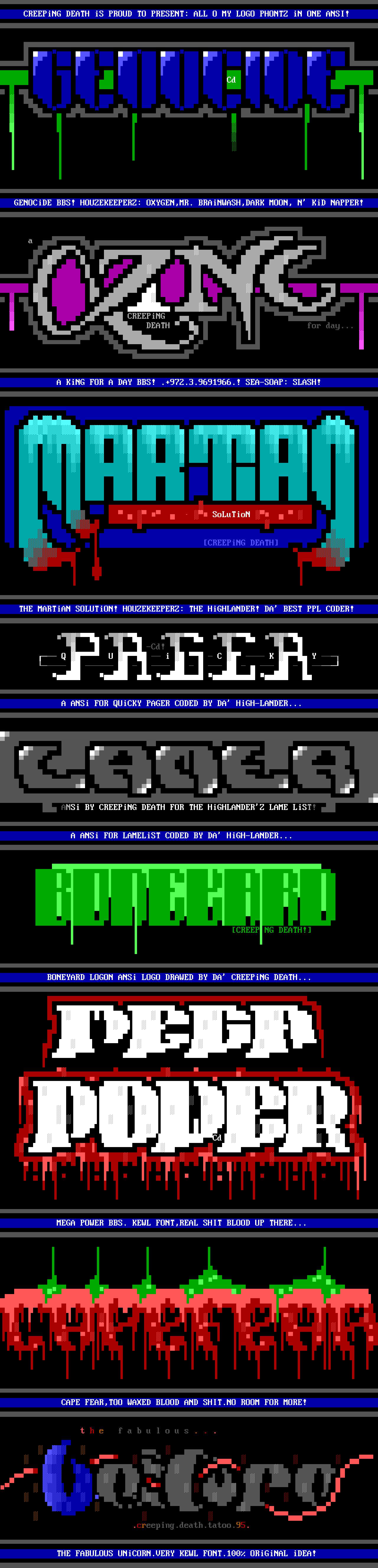 CREEPiNG DEATH iS PROUD TO PRESENT: ALL O MY LOGO PHONTZ iN ONE ANSI!