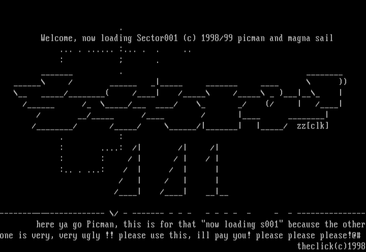 Welcome, now loading Sector001 c 1998/99 picman and magna sail