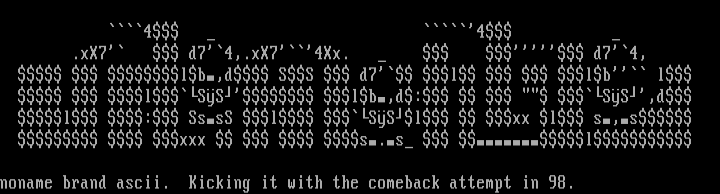 noname brand ascii. Kicking it with the comeback attempt in 98.