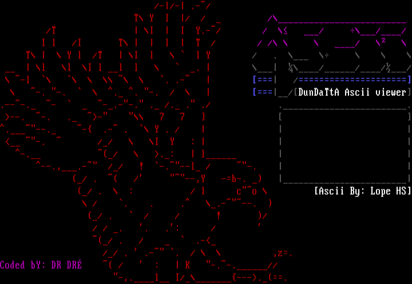 T Y l /T I l l Y / . l l I l l l . -l . .- / -. -. . . -. / /DunDaTtA Ascii viewer.---. - -.--. . /. . ./ .. --. -. . - 7 7 .--. - .- . Y . / -. // I Y : -. / .: l --.,.- // ! -.--l / -. / . / --,Y -b-. / . : / l co Ascii By: Lope HS / . . . .---.