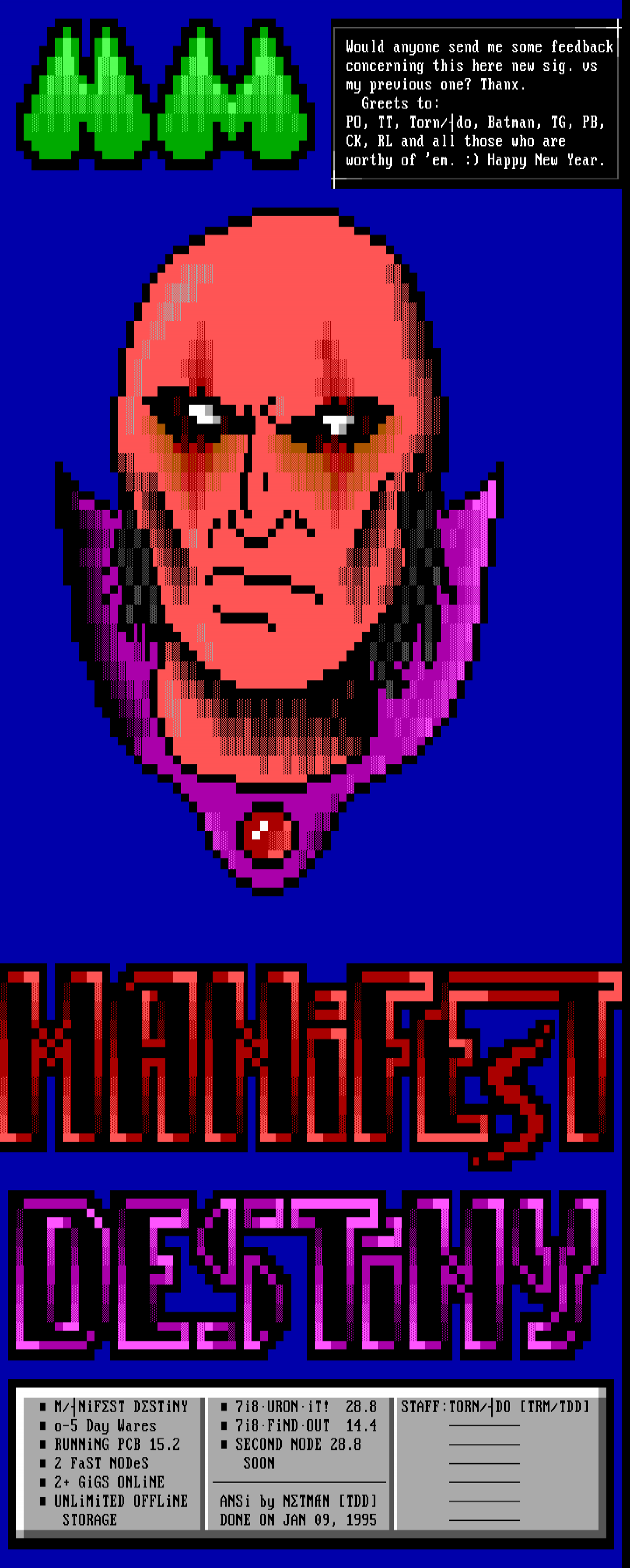 M/NiFST DSTiNY 7i8URONiT! 28.8 STAFF:TORN/DO TRM/TDD
