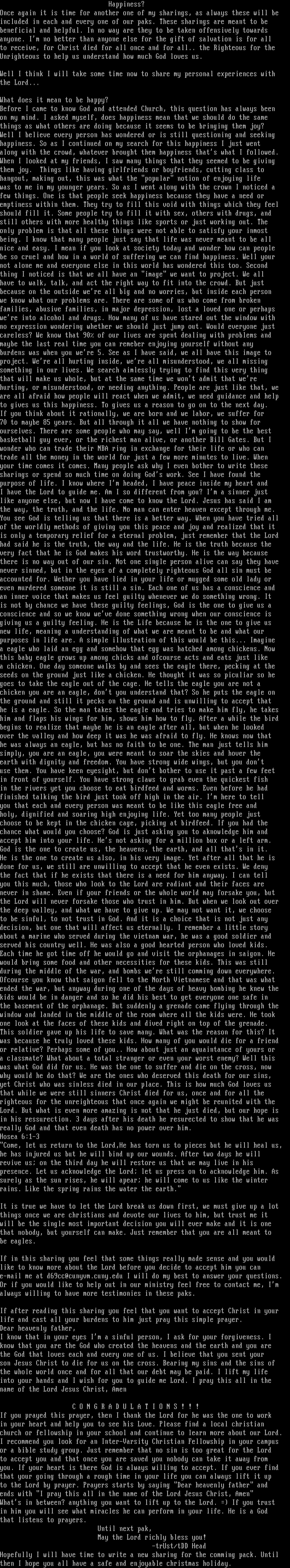 like anyone else, but now I have come to know the Lord. Jesus has said I am