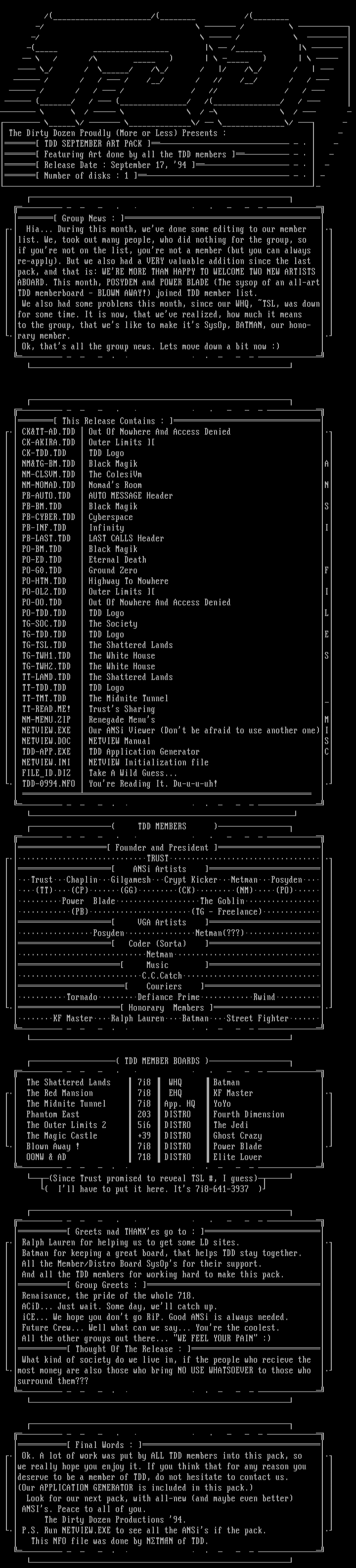 This NFO file was done by NTMN of TDD.