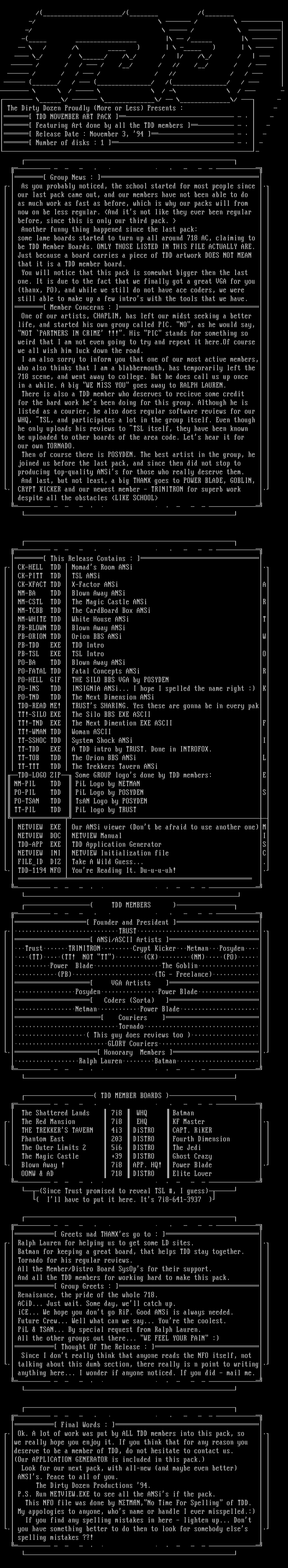 This NFO file was done by NTMN,No Time For Spelling of TDD.