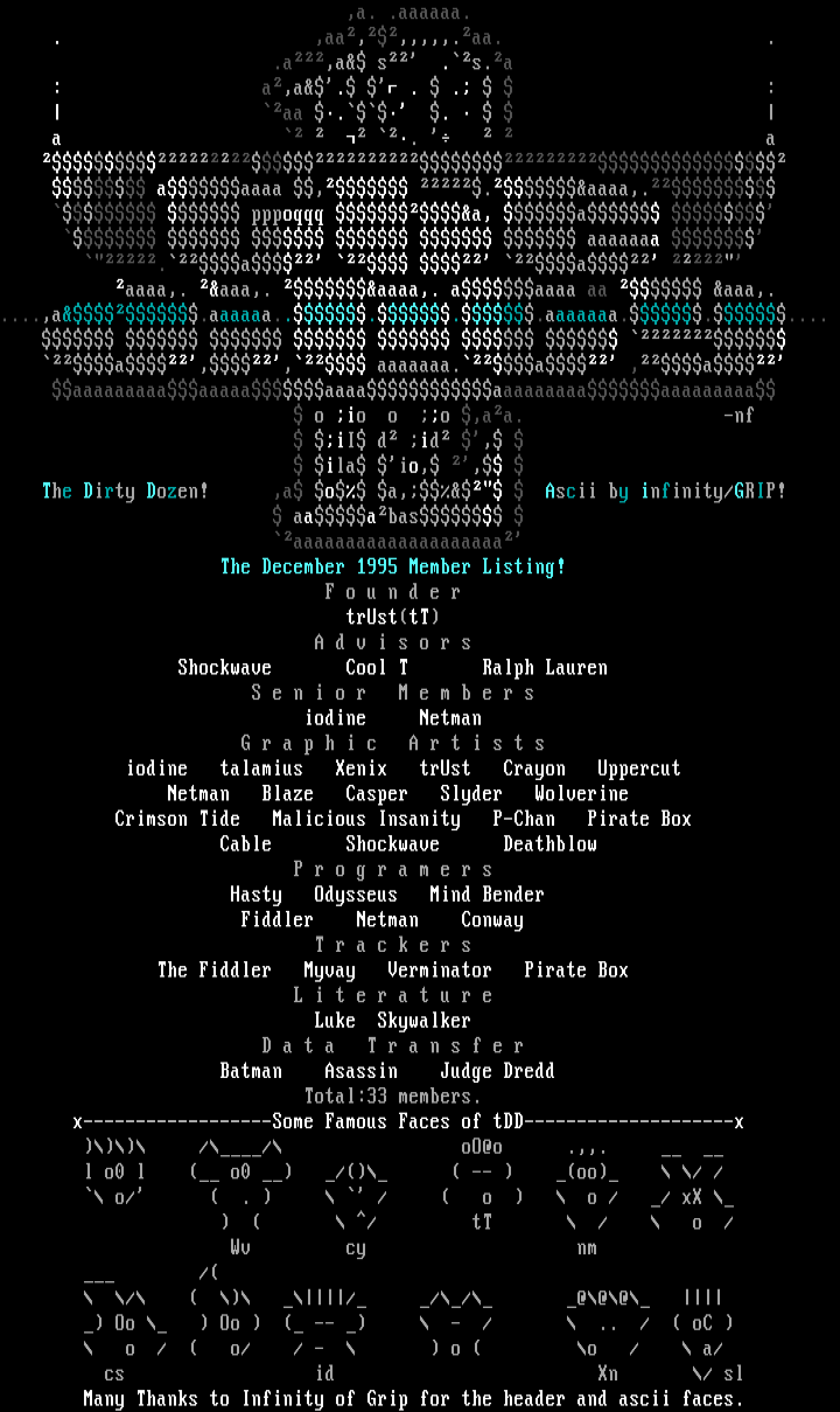The Dirty Dozen! ,a o a, Ascii by infinity/GRIP!