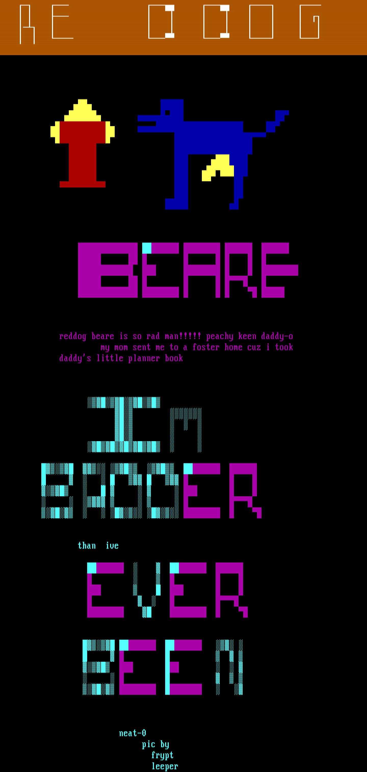 reddog beare is so rad man!!!!! peachy keen daddy-o