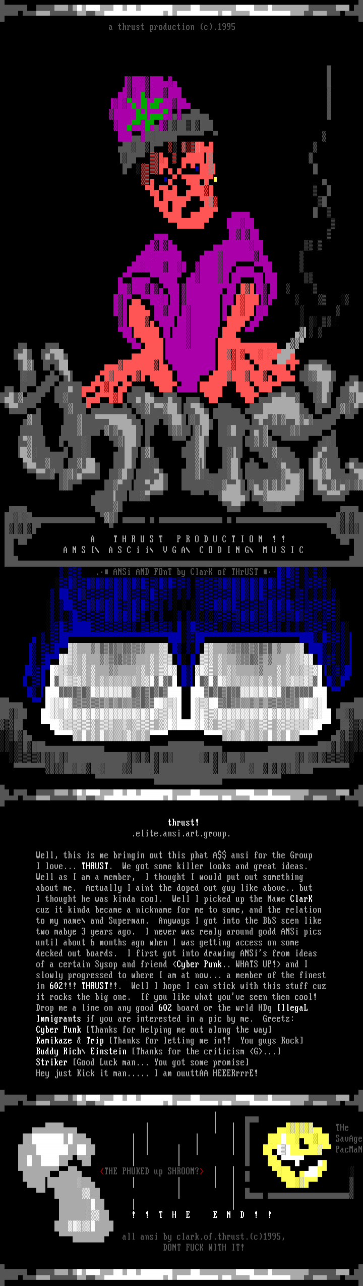 A T H R U S T P R O D U C T I O N ! ! A N S I A S C i i V G A C O D I N G M U S I C . ANSi AND FOnT by ClarK of THrUST