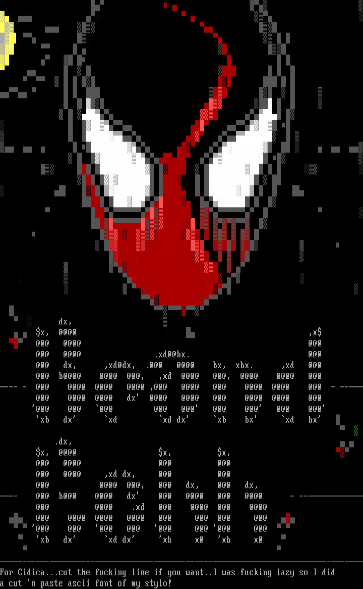 ---------------For Cidica...cut the fucking line if you want..I was fucking lazy so I did