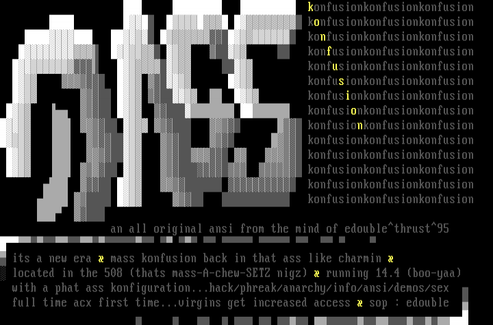 with a phat ass konfiguration...hack/phreak/anarchy/info/ansi/demos/sex