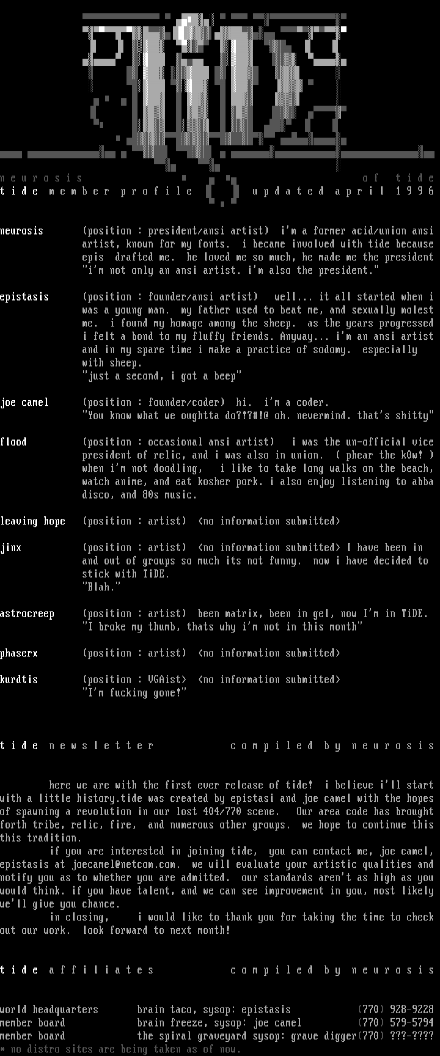 flood position : occasional ansi artist i was the un-o