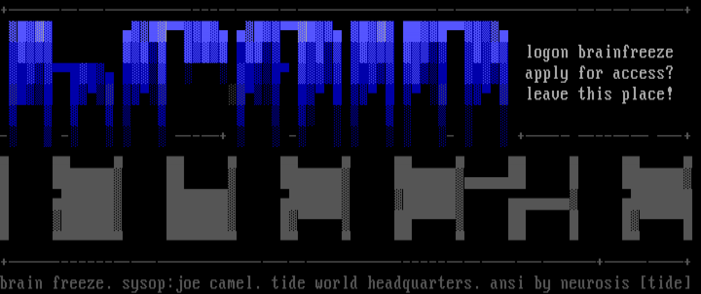 brain freeze. sysop:joe camel. tide world headquarters. ansi by