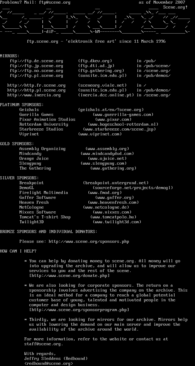 ftp://ftp.no.scene.org ftp.gathering.org in /scene.org/