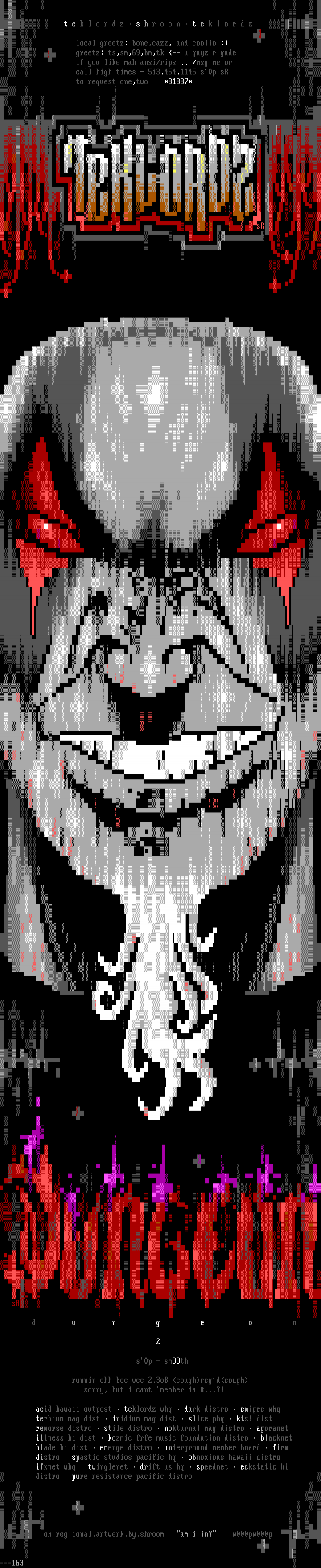 local greetz: bone,cazz, and coolio greetz: ts,sm,69,bm,tk -- u guyz r gude if you like mah ansi/rips .. /msg me or call high times - 5i3.454.1145 s0p sR to request one,two *31337*