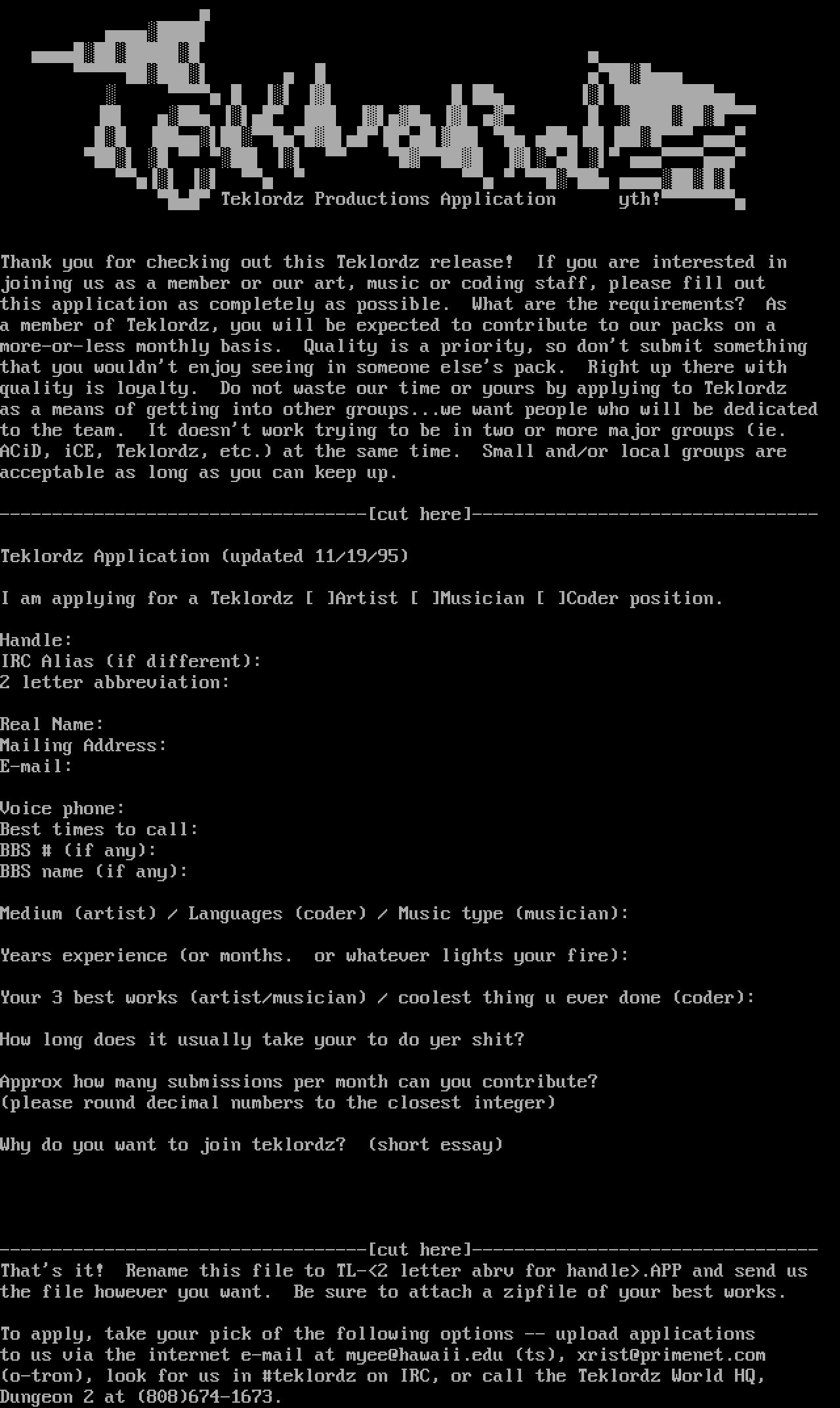 ACiD, iCE, Teklordz, etc. at the same time. Small and/or local groups are