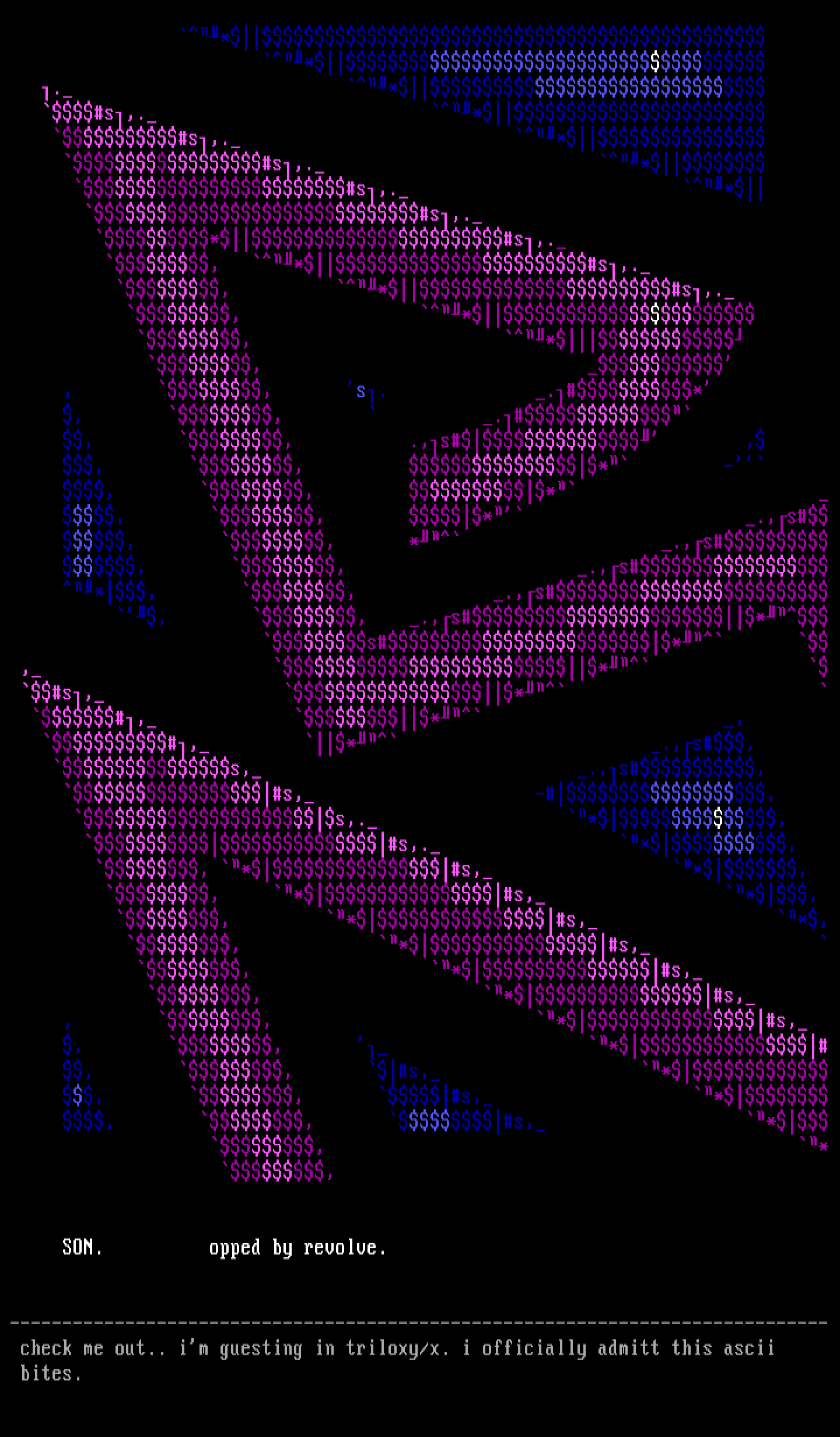 check me out.. im guesting in triloxy/x. i officially admitt this ascii