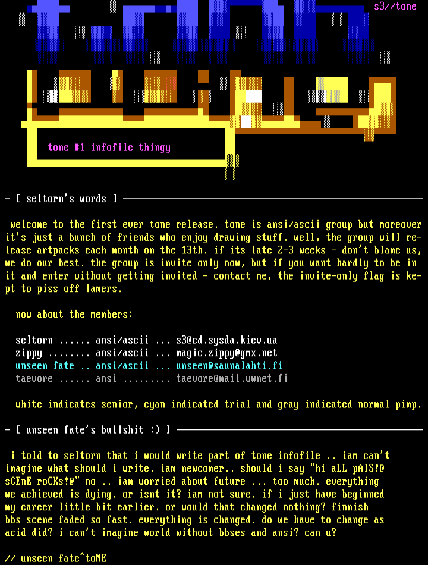 welcome to the first ever tone release. tone is ansi/ascii group but moreover