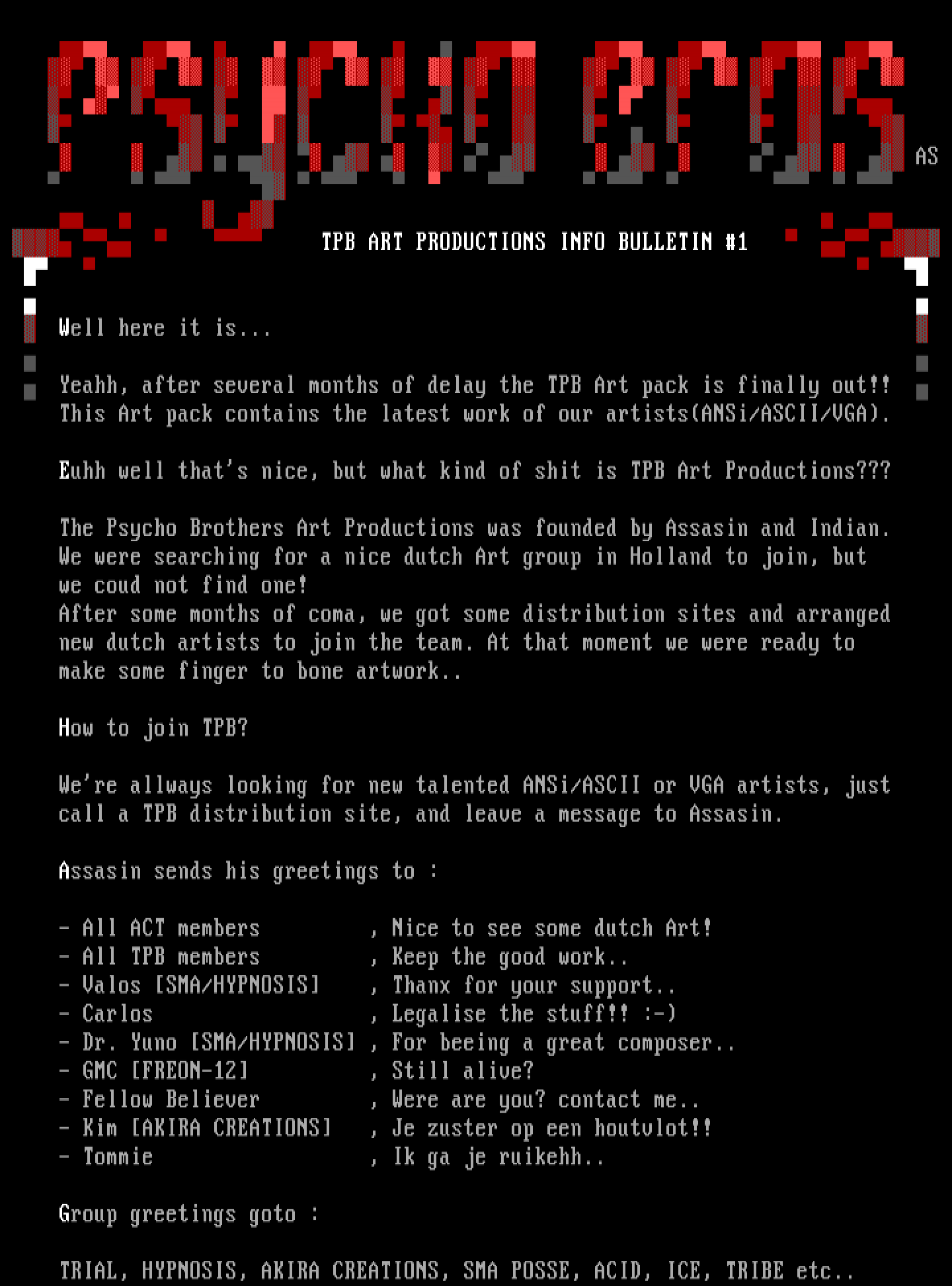 This Art pack contains the latest work of our artistsANSi/ASCII/VGA.