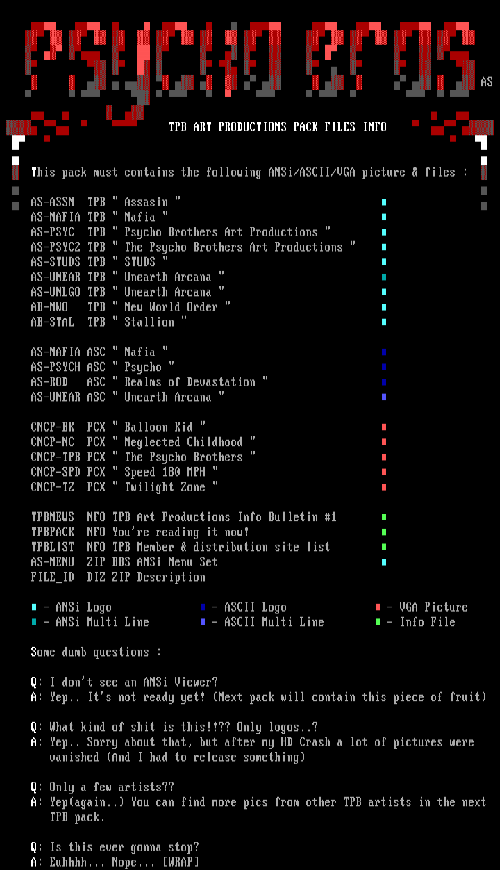 This pack must contains the following ANSi/ASCII/VGA picture files :
