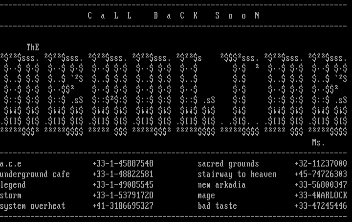 a.c.e +33-1-45887548 sacred grounds +32-11237000