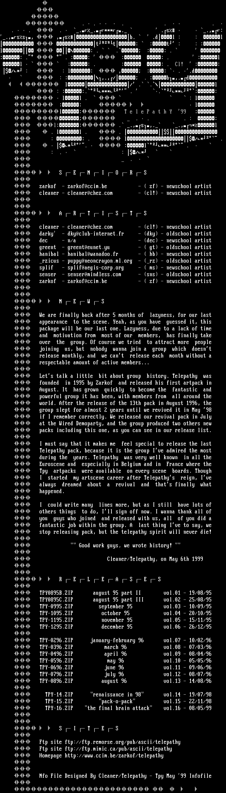Nfo File Designed By Cleaner/Telepathy - Tpy May 99 Infofile