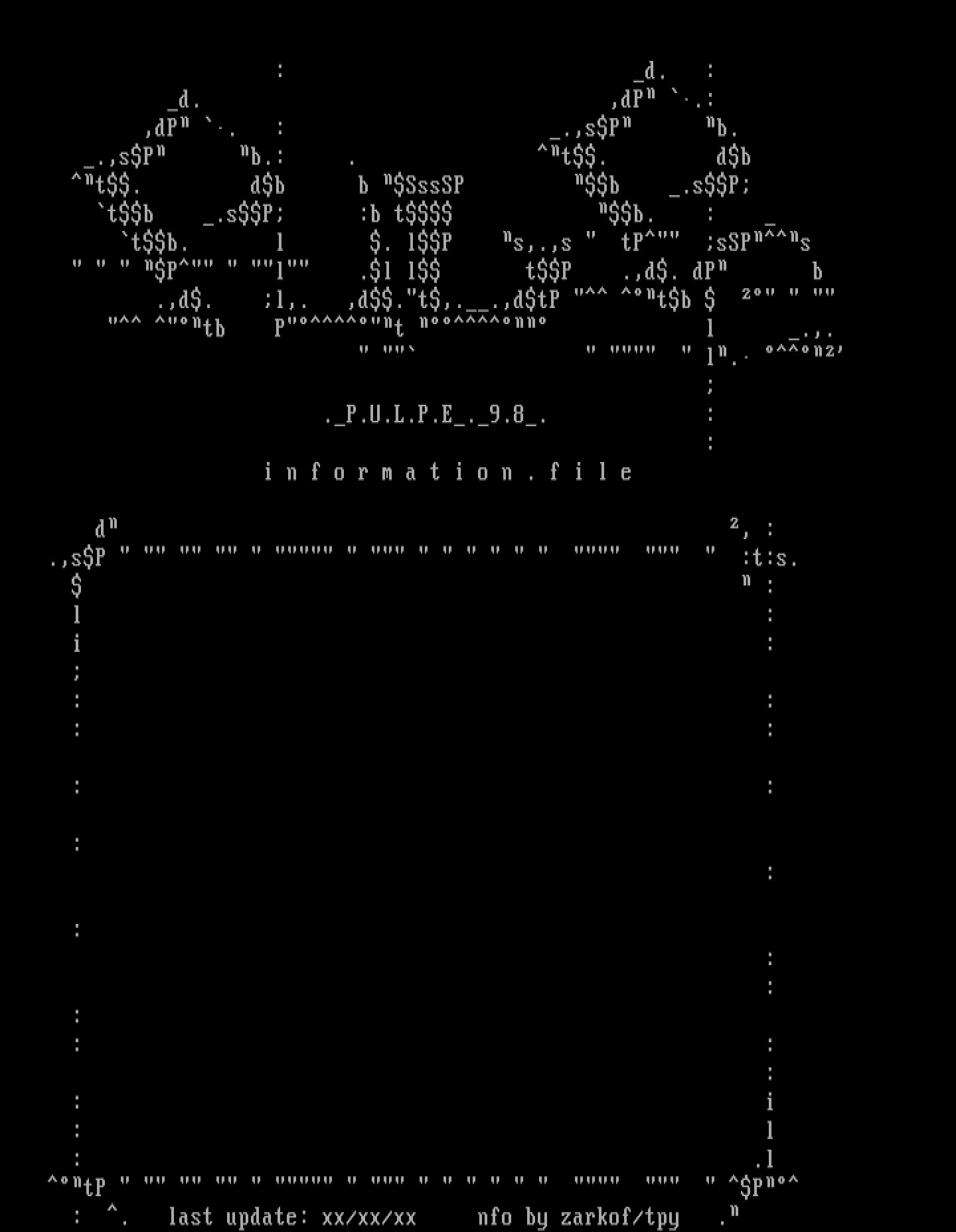 : . last update: xx/xx/xx nfo by zarkof/tpy .