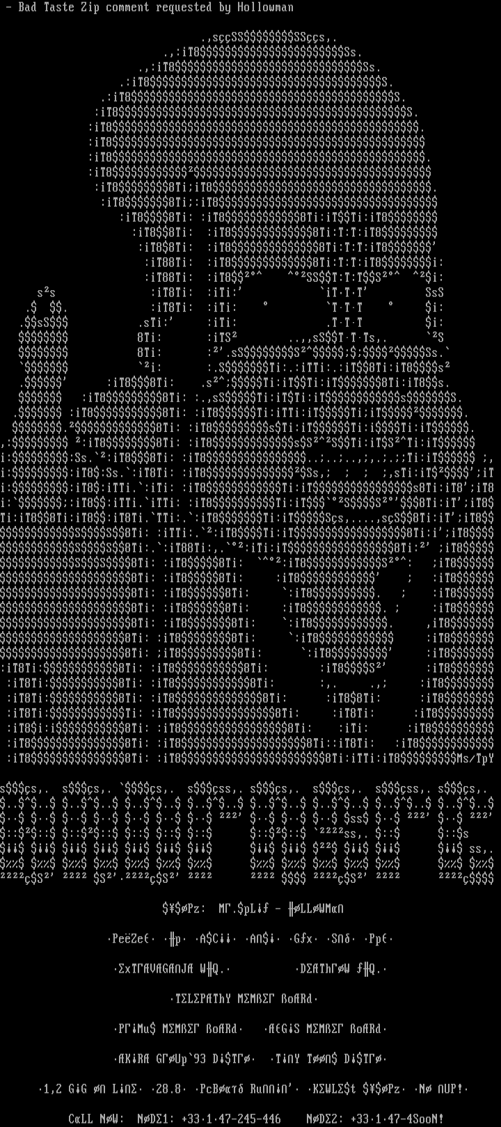 - Bad Taste Zip comment requested by Hollowman