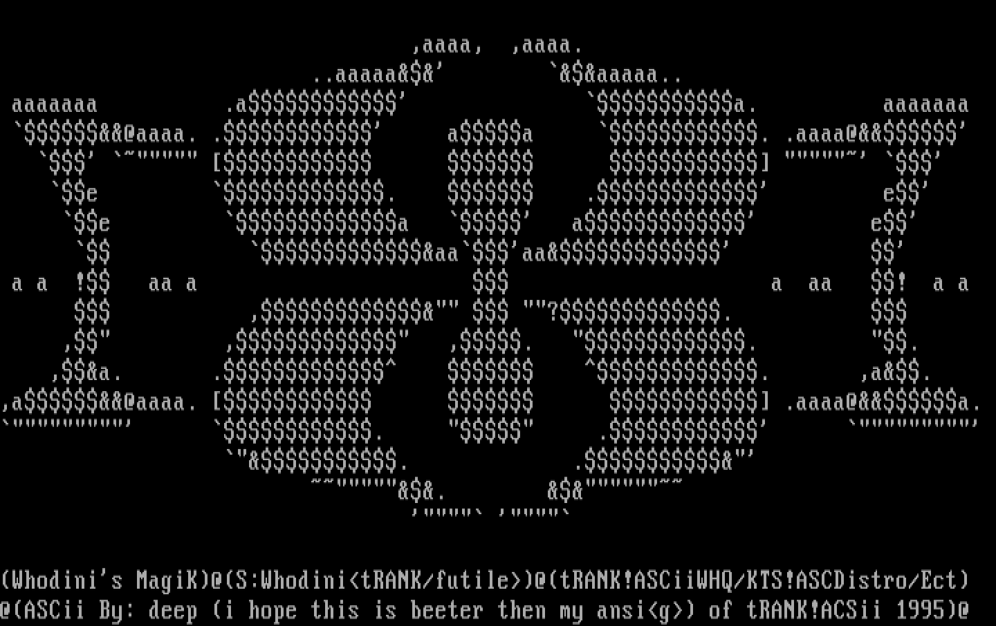 @ASCii By: deep i hope this is beeter then my ansig of tRANK!ACSii 1995@