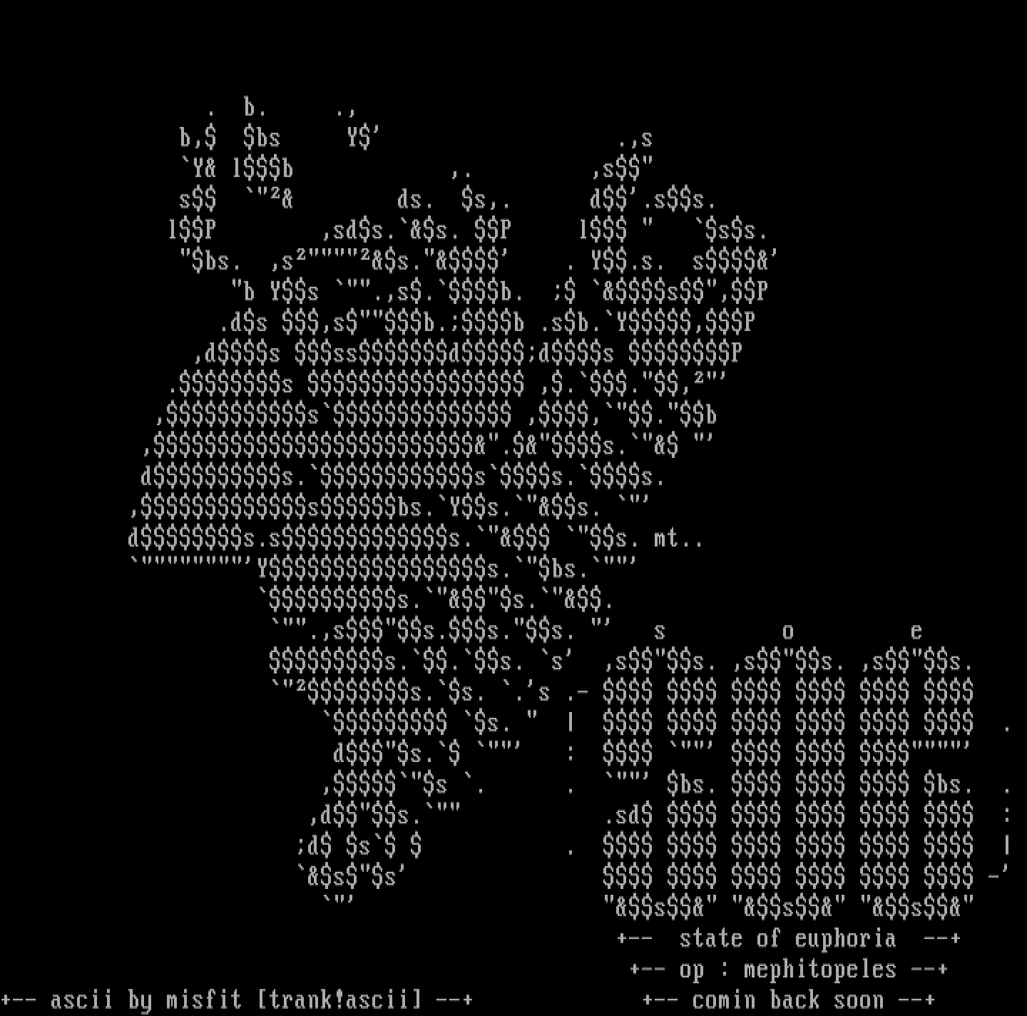+-- ascii by misfit trank!ascii --+ +-- comin back soon --+
