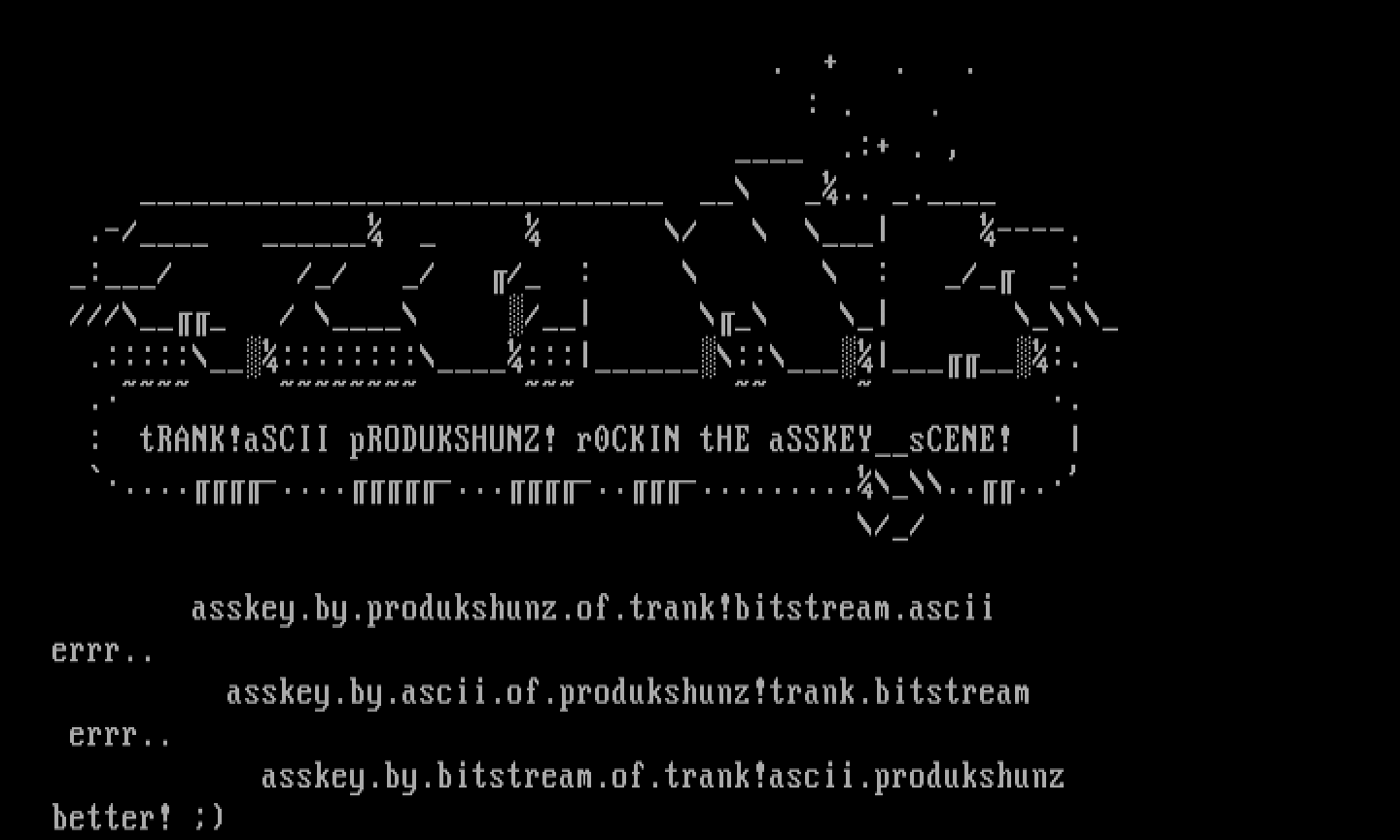 : tRANK!aSCII pRODUKSHUNZ! r0CKIN tHE aSSKEYsCENE!