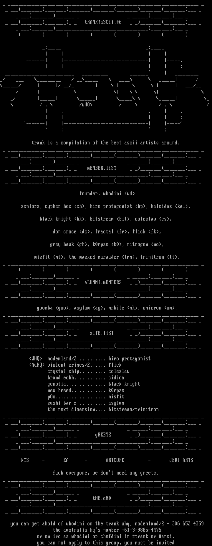 you can get ahold of whodini on the trank whq, modemland/2 - 306 652 4359